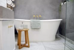 Made from contemporary bamboo with painted white aluminium shelves, it’s the perfect combination of a modern material mix with dedicated design details.