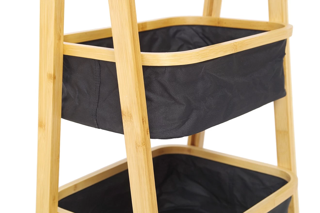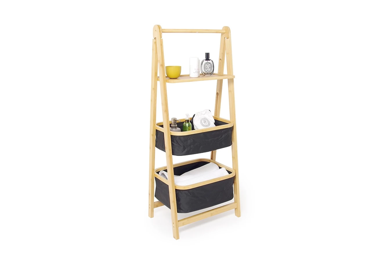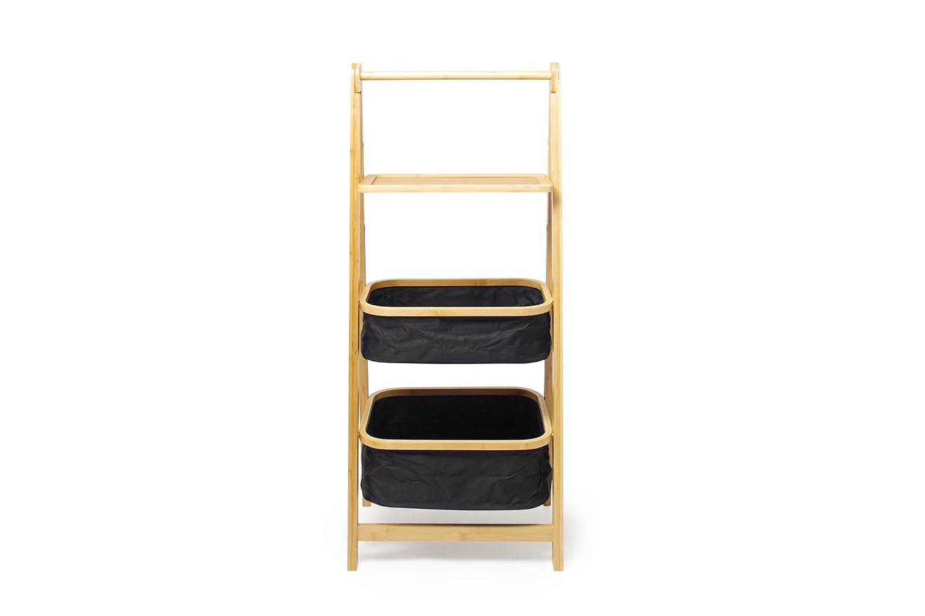 Ideal for bathroom, utility rooms, guest rooms or anywhere extra storage is needed, this bamboo rack features a top shelf and 2 deep storage baskets for towels, bathroom essentials, holding clothing and accessories.