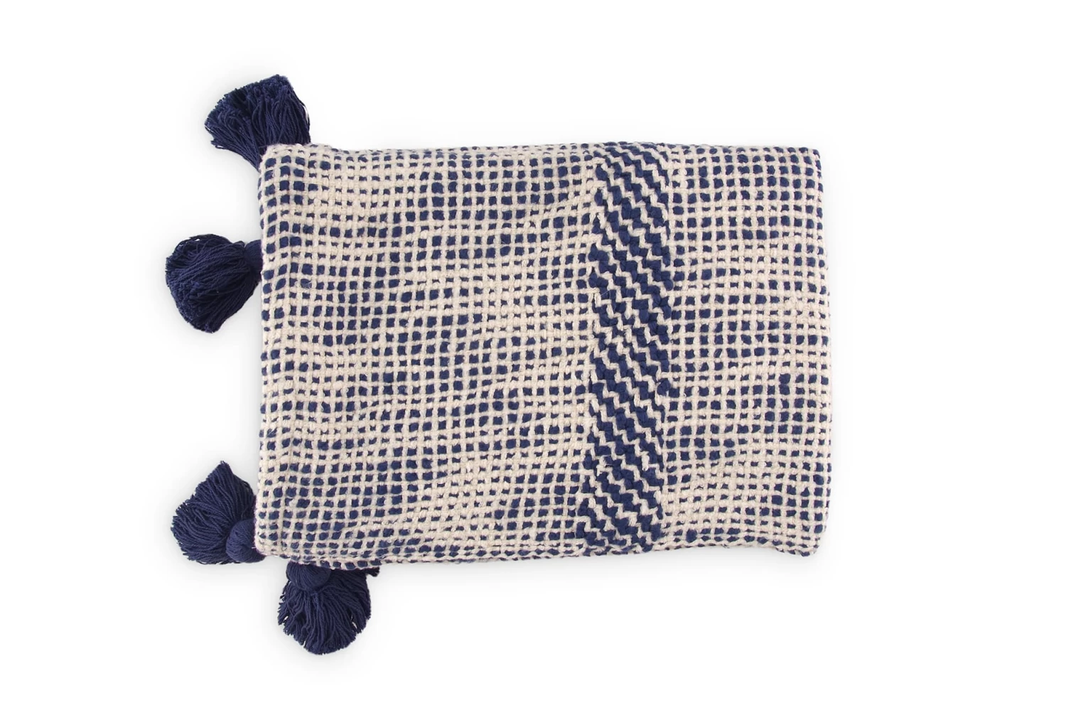 Wrap yourself in luxury with our Chania Throw in a stunning combination of soothing blue and natural hues.