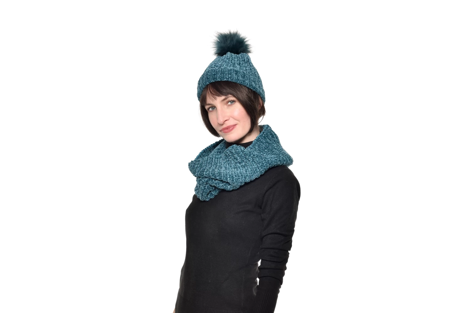 Chenille Knitted Neck Warmer (Oslo Blue) -Cozy Home Shop FC Bobble Hat Oslo Blue 3 zilt mq