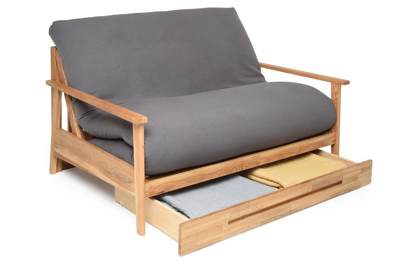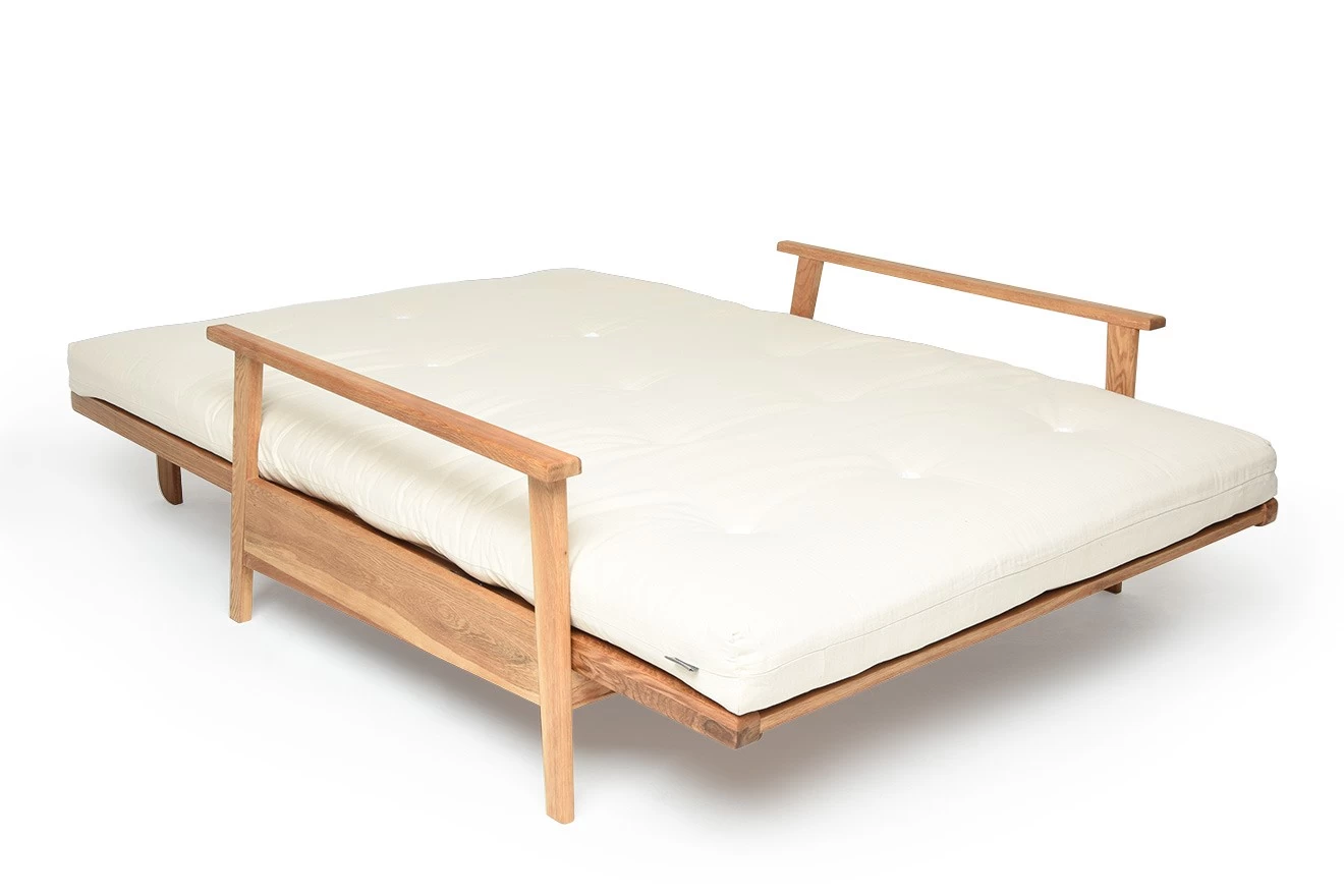 Haiku 2 Seater Oak Double Sofa Bed – Our Haiku 2 Seater Sofa Bed takes luxurious lounging up to the next level. With its naturally modern minimal Japanese style frame, this sleek piece is effortlessly transformed from a slumber-inducing sofa into a full size double bed. Made from oak, the robust and hard-wearing frame has a satin-oiled oak finish. What’s more, this space saving two seat sofa easily converts into a comfortable sleep space for two. To care for your frame, a dab of linseed oil will help to restore a marked or bumped frame to its original glory.