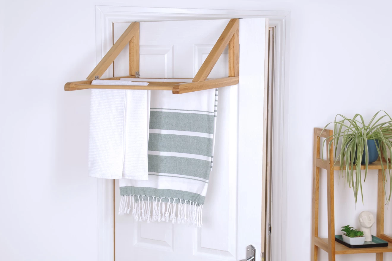 Ideally designed to hang on the space behind doors it comes with four spacious rungs – perfect for hanging clothes and towels to dry.