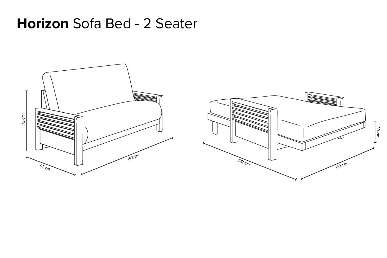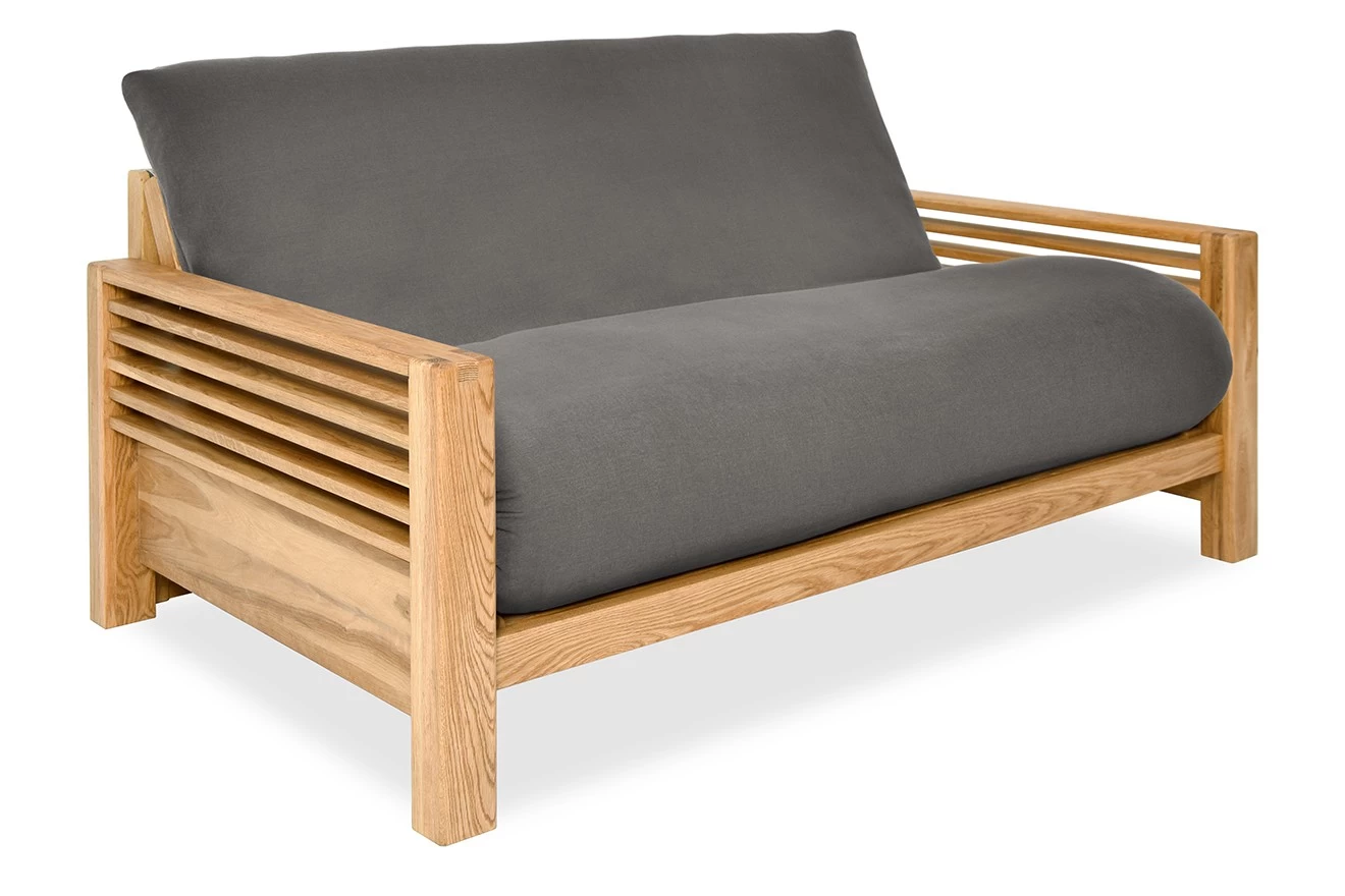 Horizon 2 Seater Solid Oak Sofa Bed – Make a style statement by injecting a feel of mid-century modernism into your space. Effortlessly transforming from a sofa for 2 to full size double bed, Horizon offers extreme compact comfort while its frame is made from high quality solid satin-oiled oak. Horizon is guaranteed to turn any small space into a contemporary, cosy corner – especially if you order this version with the three panel futon. A combination of high quality and stunning design detail comes at a price, so Horizon sits right at the top of our range. But what price do you put on comfort?