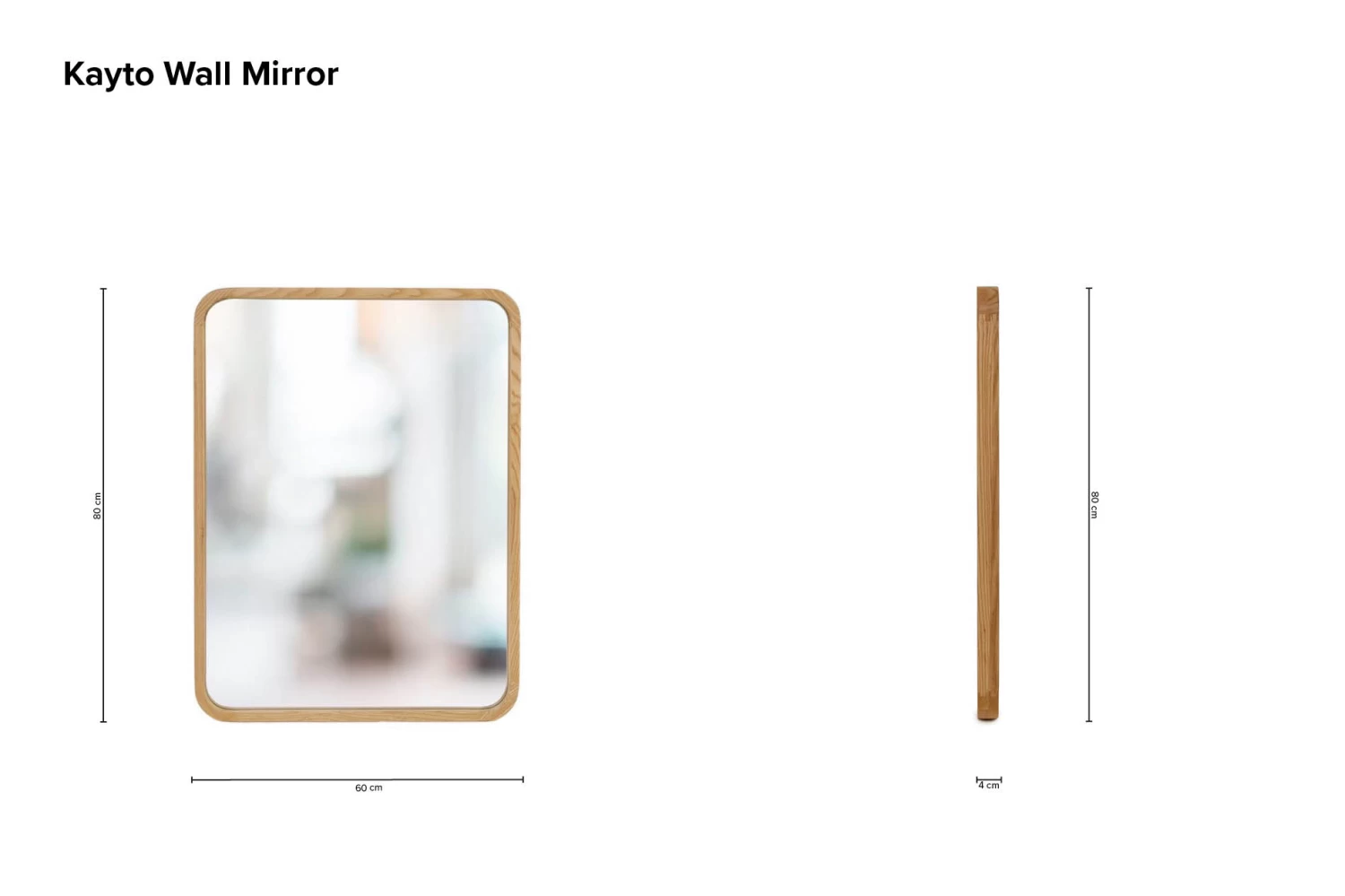 The Kayto mirror features a sleek solid ash wooden frame and is the perfect addition to the wall in a bedroom, lounge, hallway or bathroom.Â