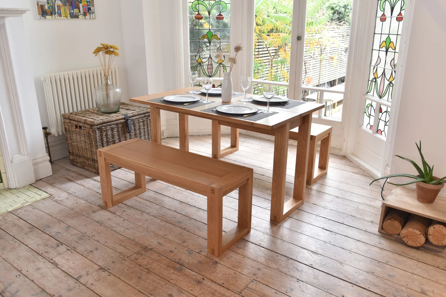 Whether you’re looking for a generous workspace or a family dining table, this flexible console table is twice as nice, made of smooth solid oak and oak veneers.