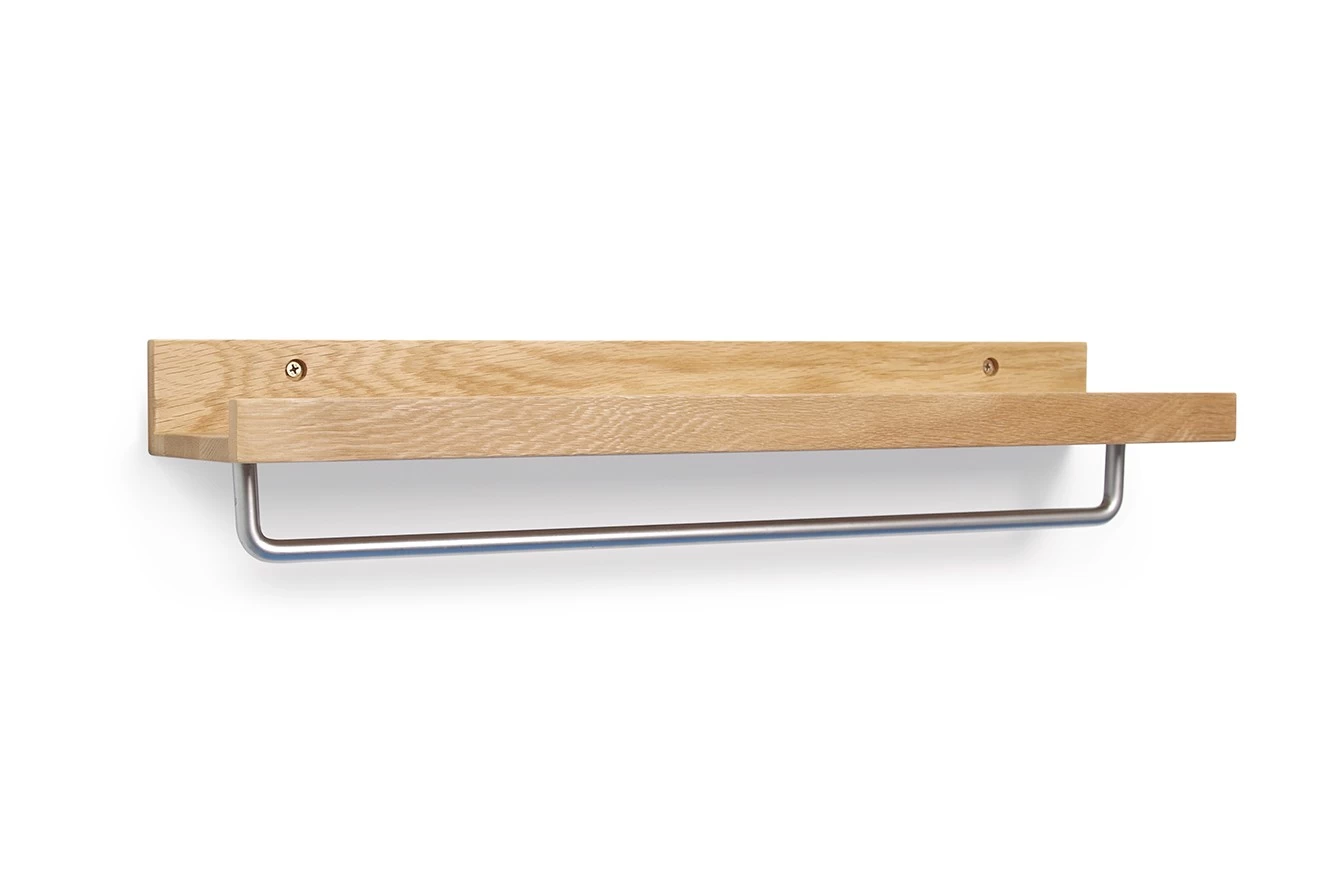 Add an extra dimension with our 60cm long oak deep picture rail that has a stainless steel hanging rail.