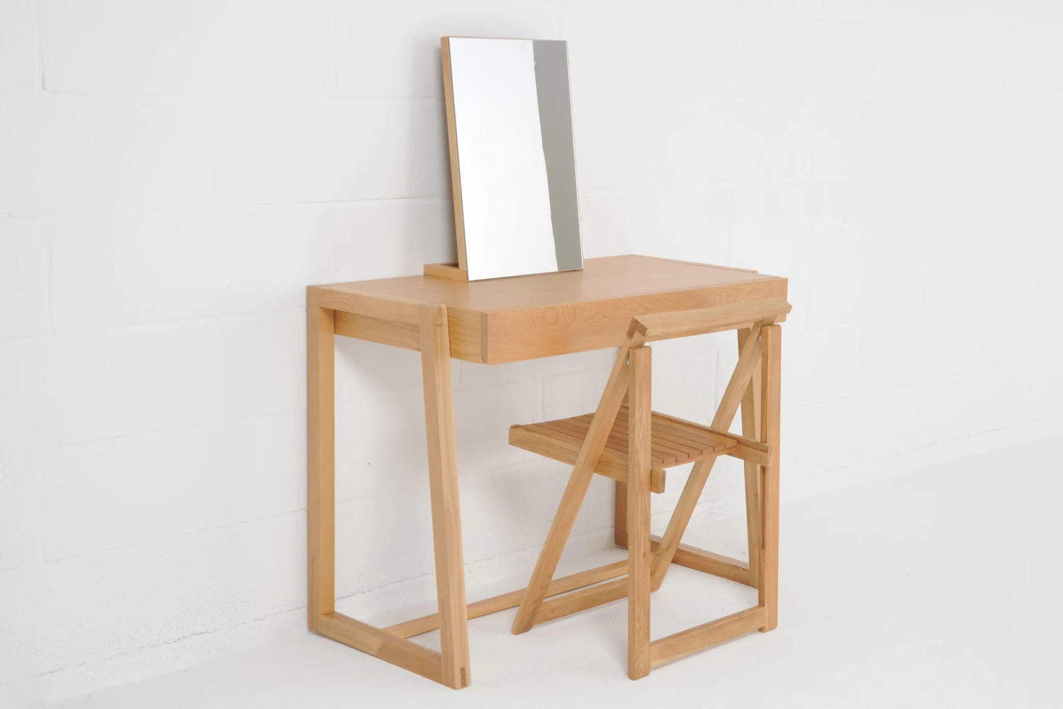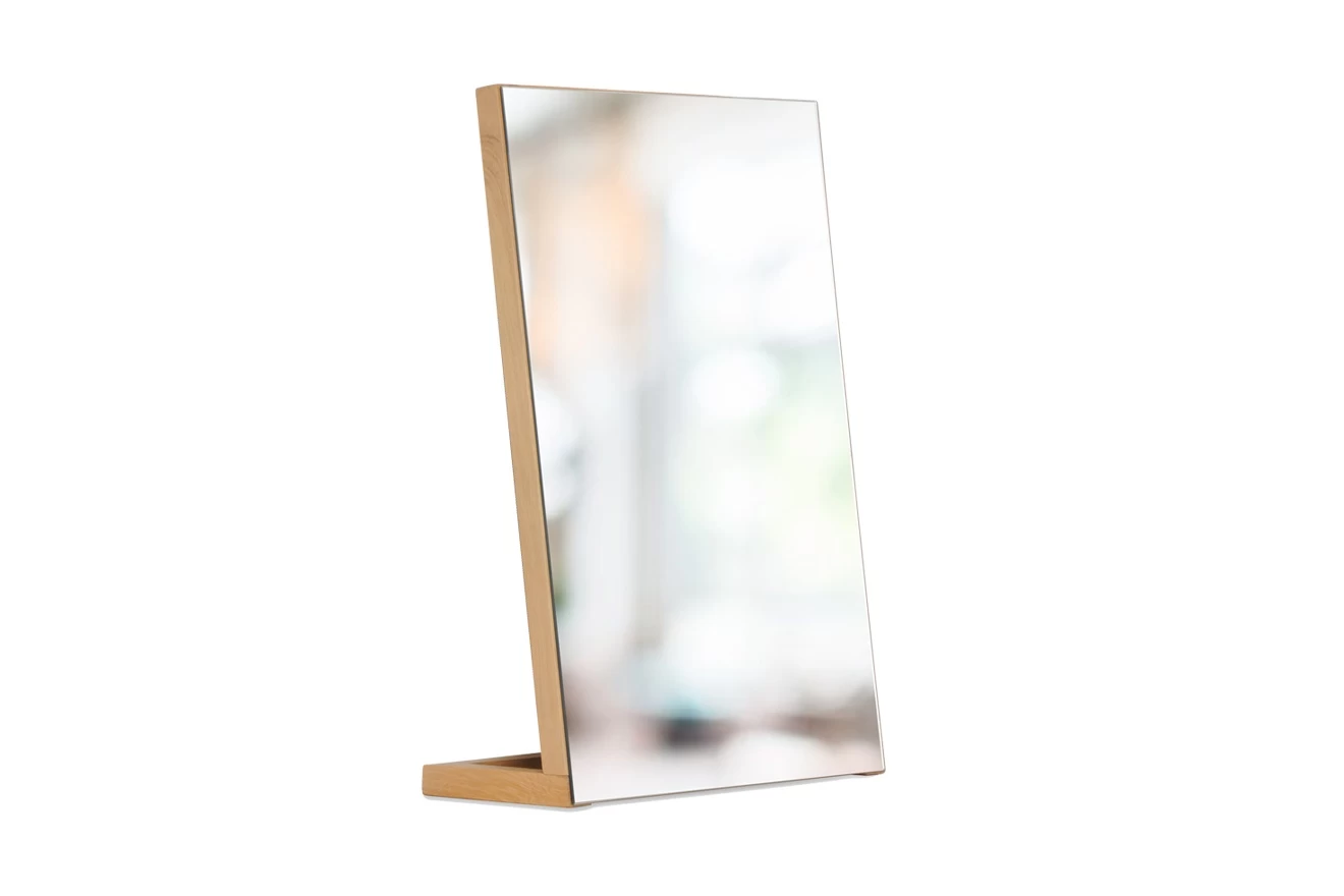 A neat, modern freestanding mirror on a solid oak frame, this simple clean design will transform any table or desk into a dressing table.