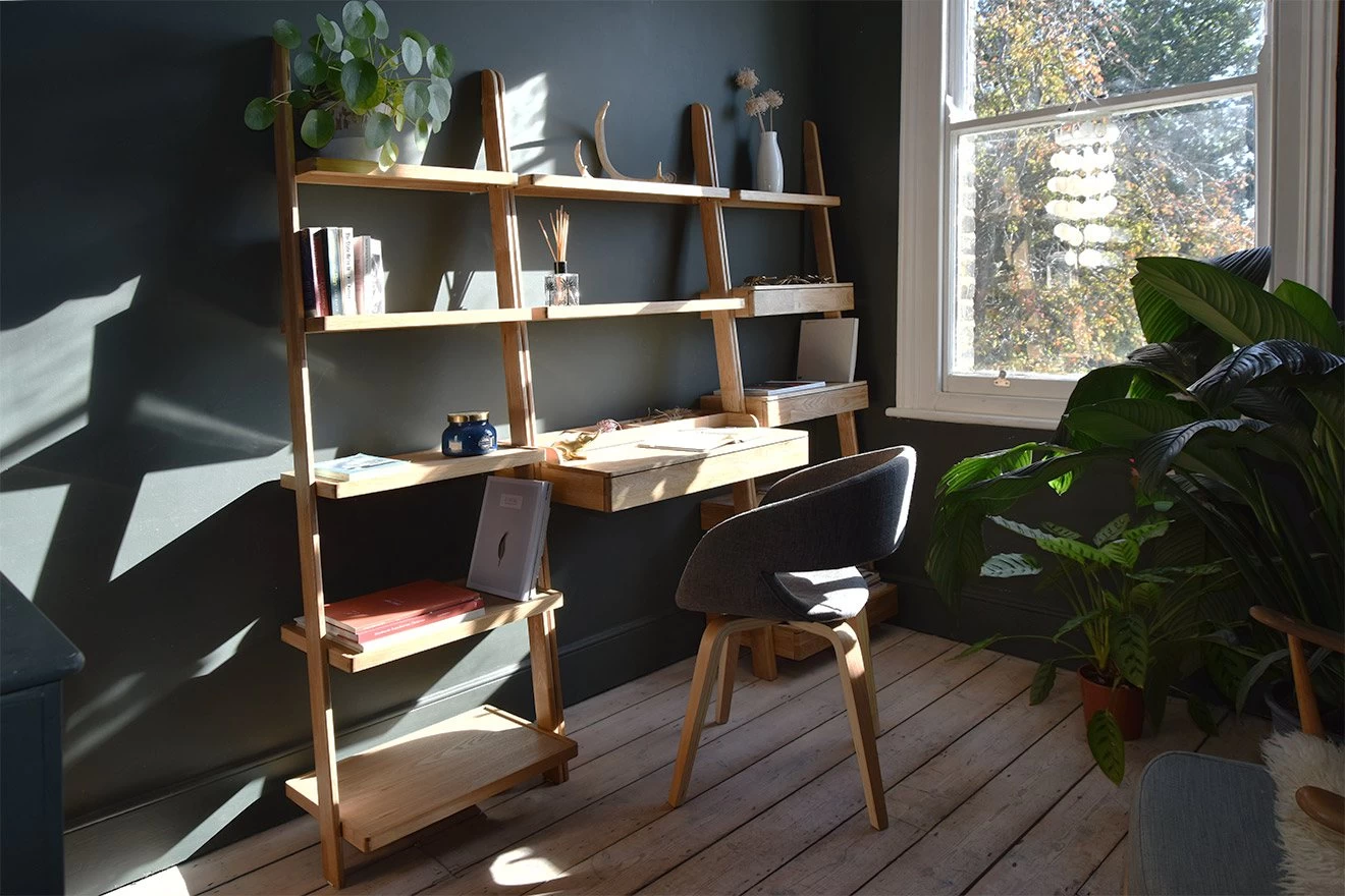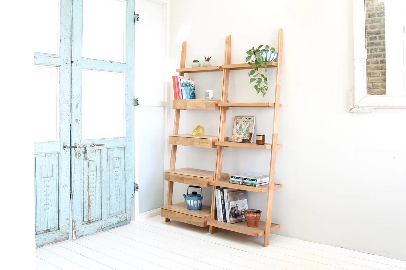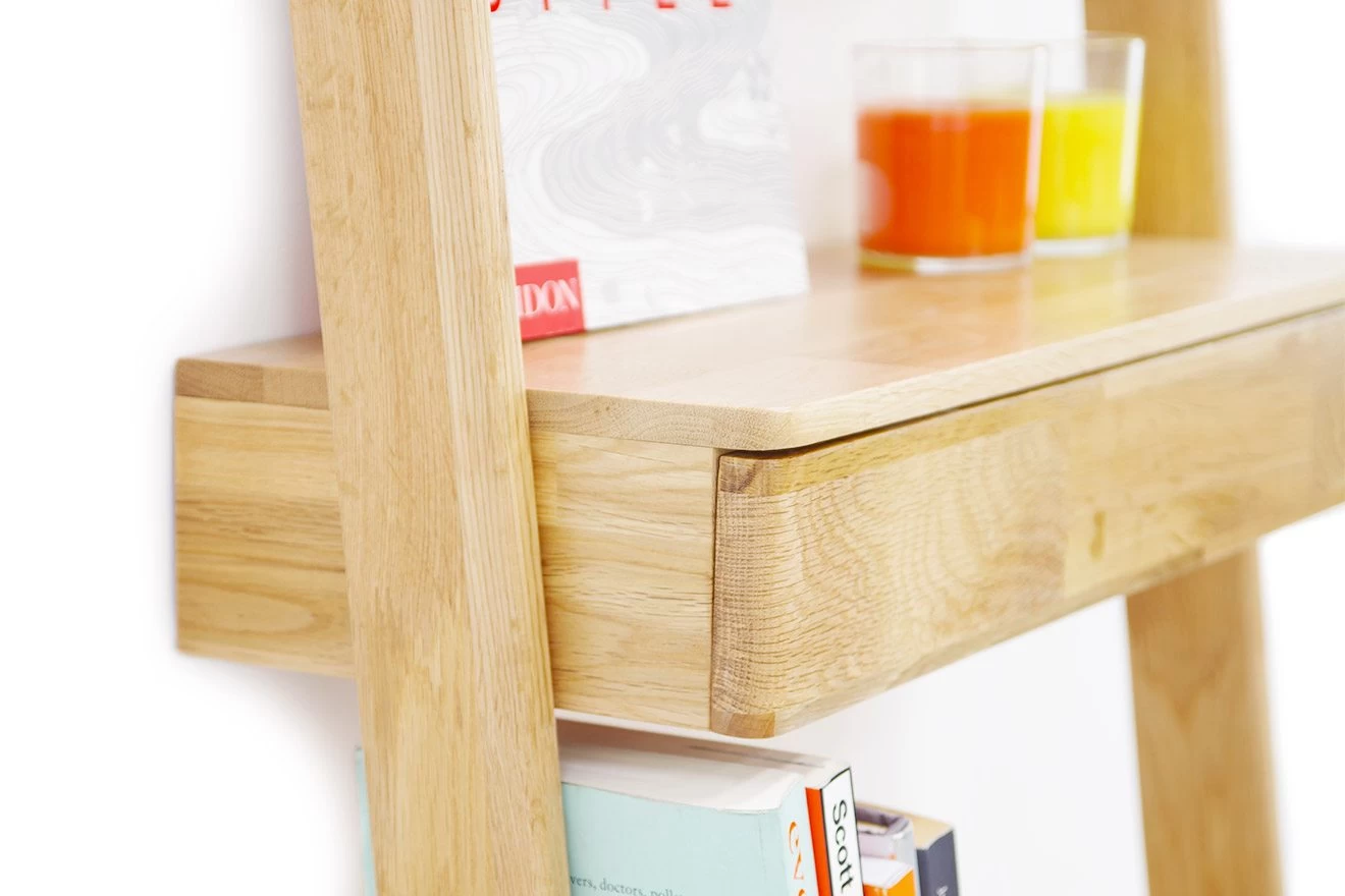 This tidy piece is ideally designed to curate and conceal simultaneously, combining shelving for knick knacks that want to hog the limelight (think pictures, ornaments and books) and cleverly concealed storage drawers for pieces of a more personal nature. It makes the perfect companion to our oak wide ladder shelves, ladder shelves and narrow ladder shelves when lined-up against the wall.