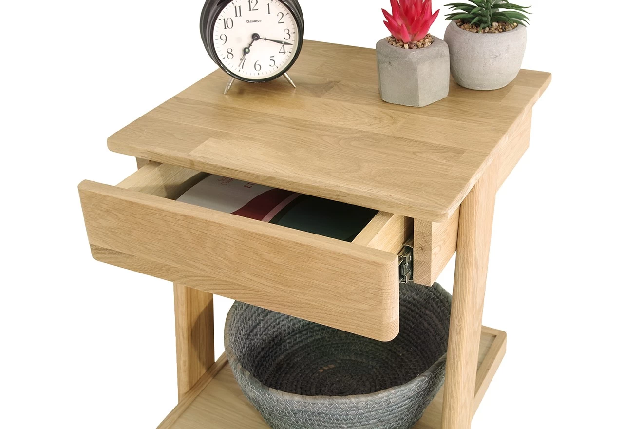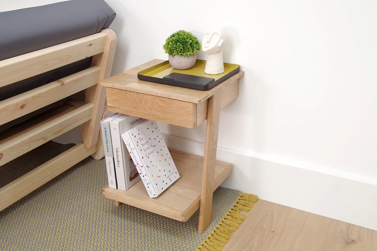 Combining Scandi-sleek good looks with a svelte footprint, two bang-tidy shelves and a hide-away drawer to stash your secret stuff, this perky piece is a hardworking hero. Plus it’s a great bedside table or stand alone side table.