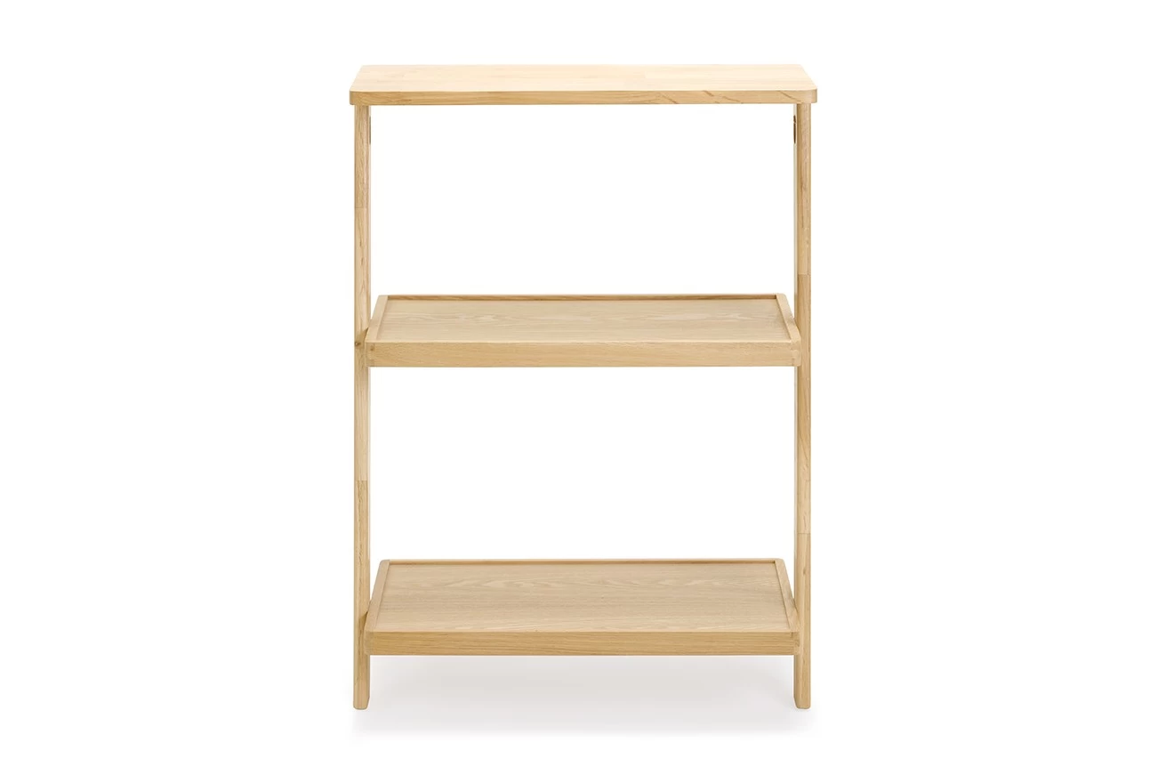 The lower two shelves are made from oak veneered panels with solid oak trim, the top shelf is solid oak as are the uprights. With soft, rounded edges, it’s easy on the eye, and all of the wood and veneer is protected by a robust and hard-wearing matt lacquer.
