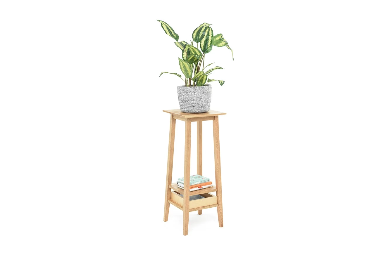 With two distinct display areas – ideally designed for books and knick-knacks at the bottom and a lamp or plant on top – there’s even a little birch tray at the bottom for extra storage.