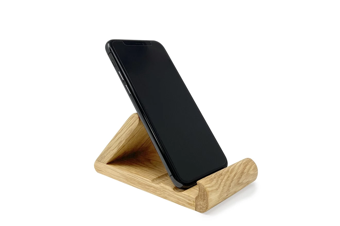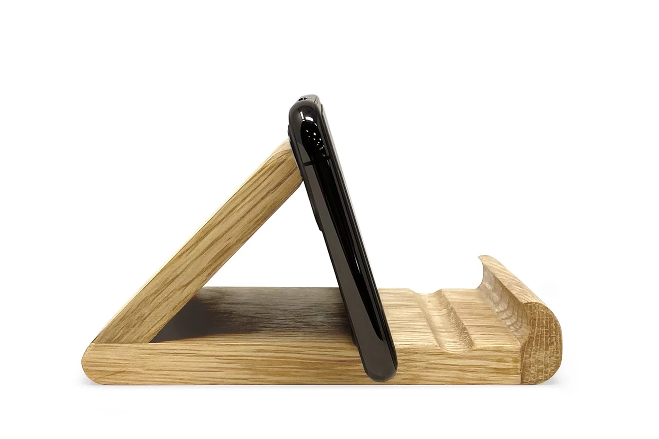Stand to attention! Our sleek solid oak phone stand is ideally designed to hold your phone or tablet.