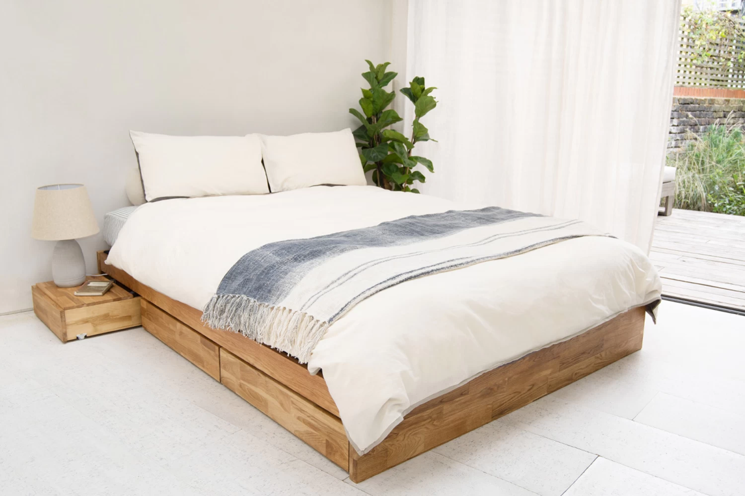 The Frame is made from solid oak with drawers made using solid oak and plywood, this streamlined sleek bed is modern minimalism at its best.