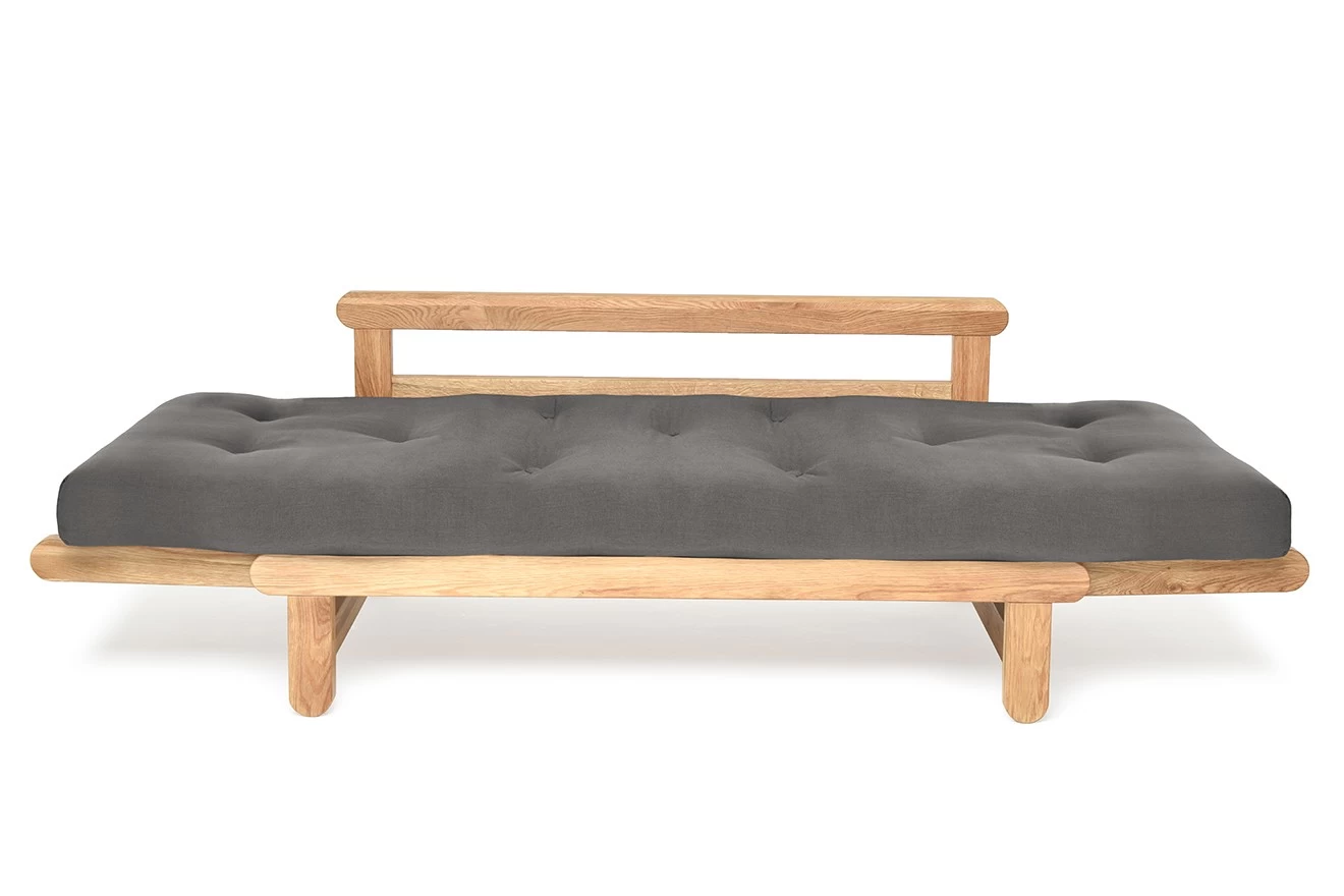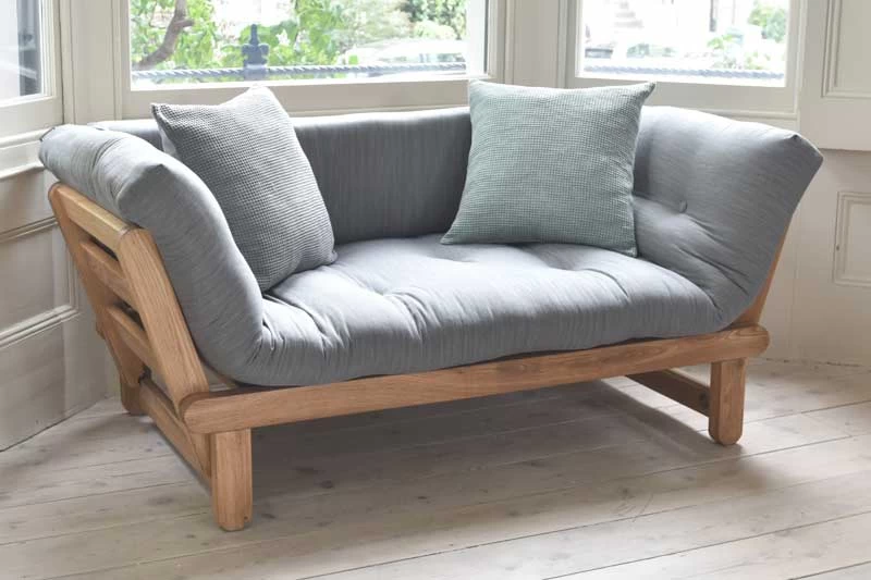 Oak Twingle Day Bed – Rest easy, our Oak Twingle Sofa Bed is crafted from the stuff that dreams are made of. Oak Twingle’s deeply comfortable fibre-filled mattress rests on an attractively sturdy oak frame and is finished with a shaped back cushion. The result? A snuggly two seat sofa. But the magic doesn’t stop there. Take your comfort levels up a notch by simply adjusting the arms down to a horizontal position, transforming Twingle into a day bed or full-length single bed.