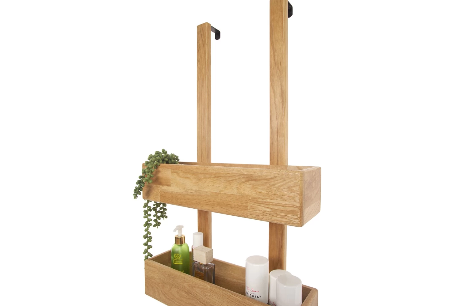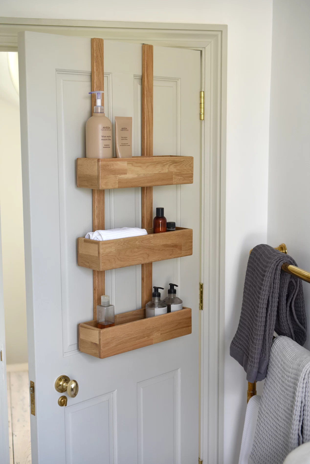 Ideally designed to hang on the space behind doors it comes with three spacious caddies – perfect for storage.