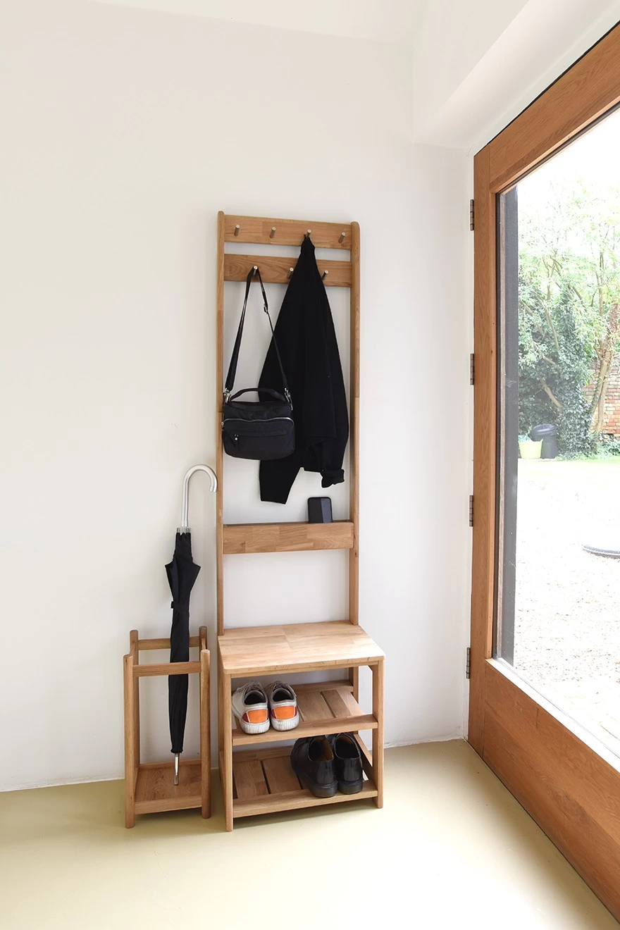 Made from marvellous solid oak with a satin oil and lacquer finish, this space-enhancing piece is off the wall.