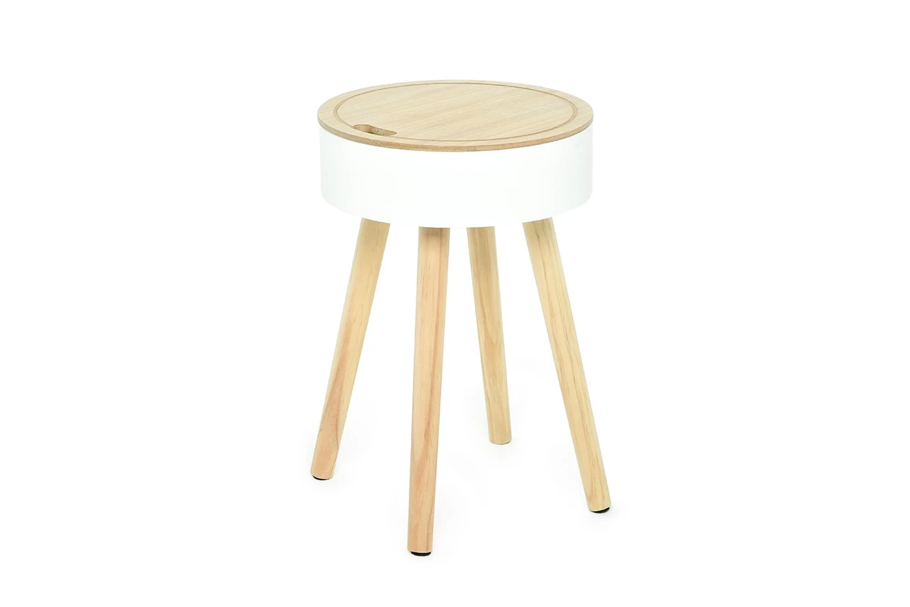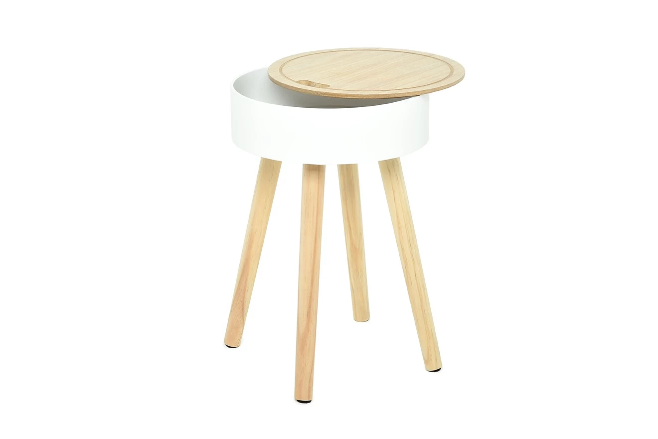 This circular side table works well in the bedroom or living room and comes complete with a lift-off tray top that reveals handy storage – the perfect hiding place for stashing remotes and phone chargers.