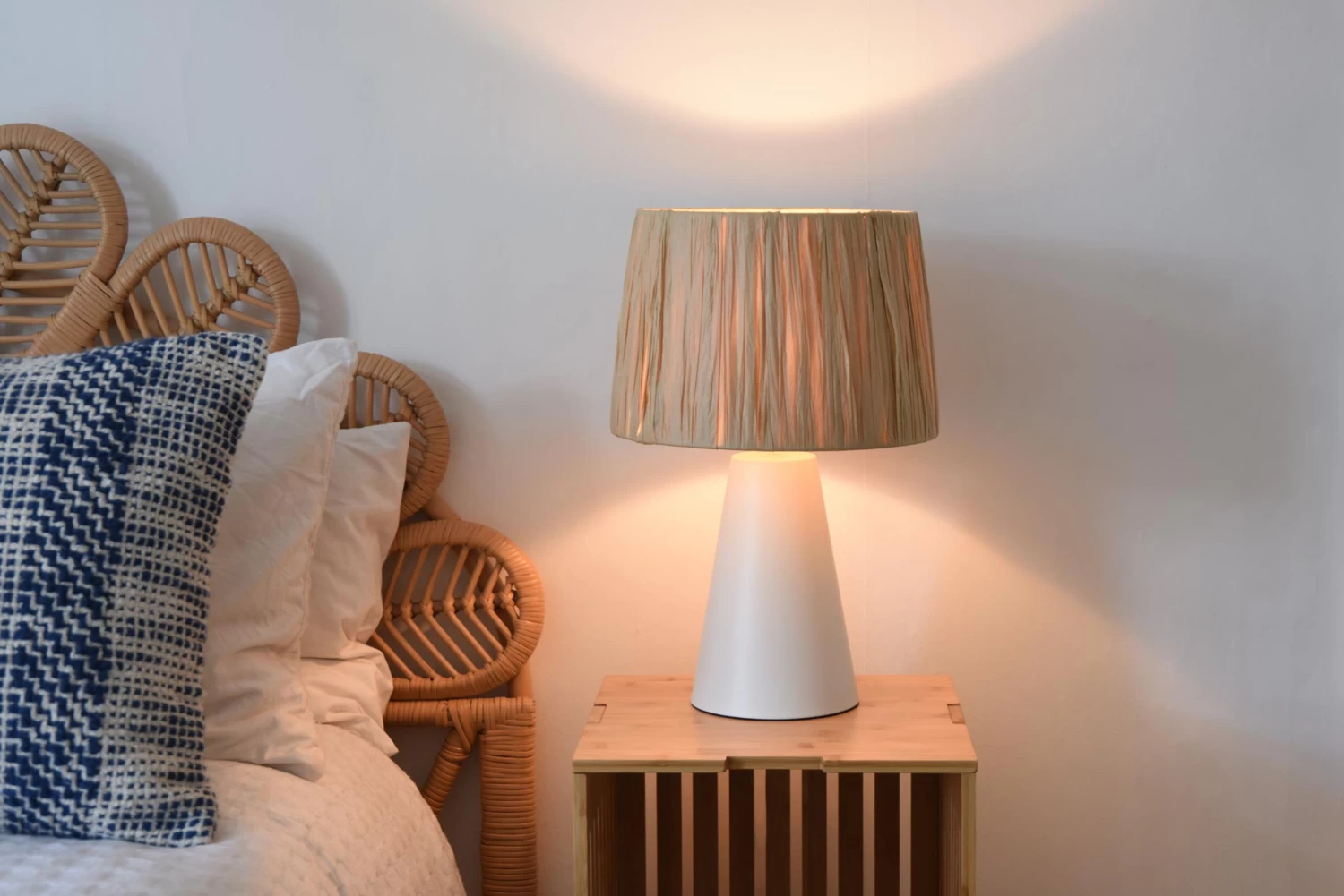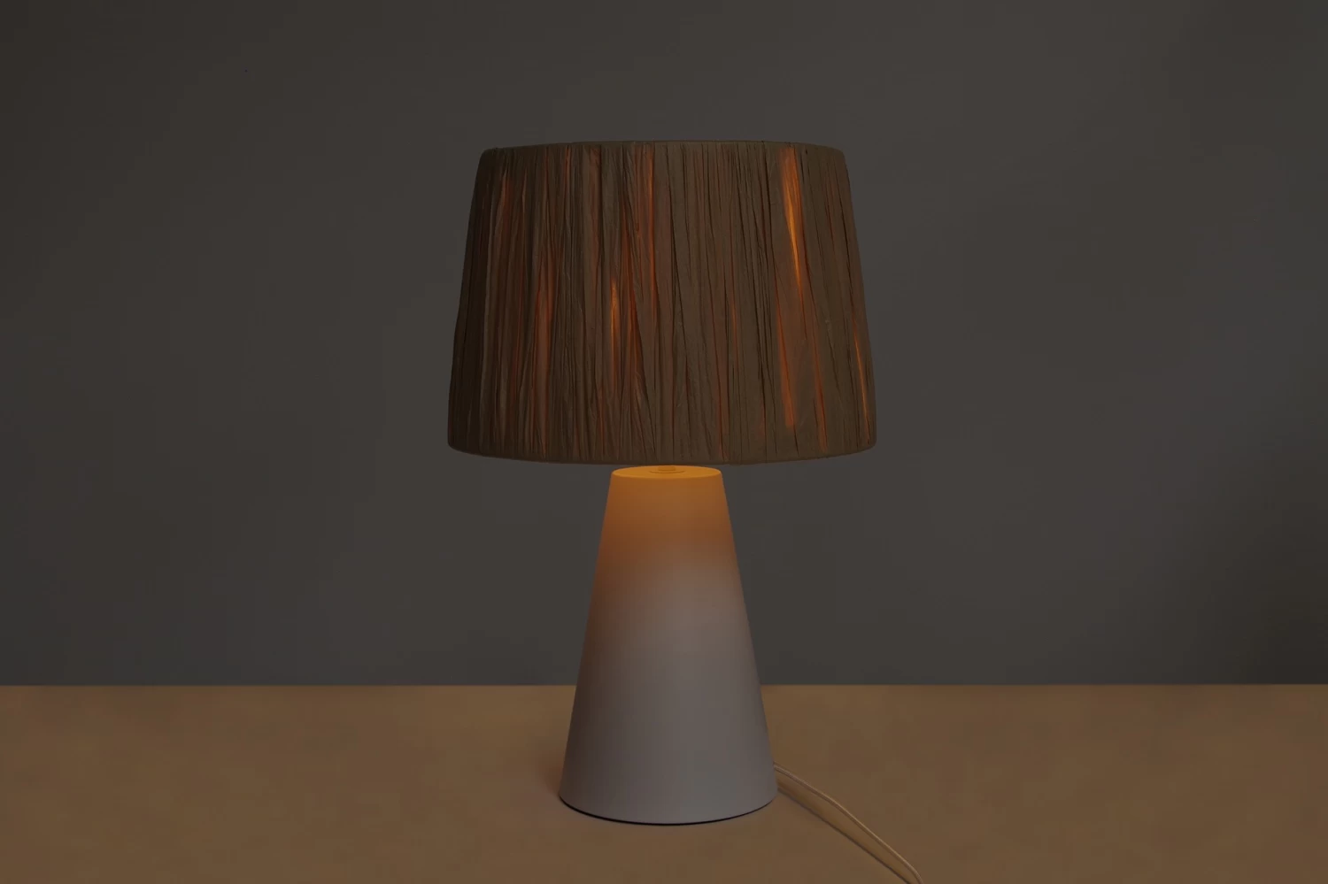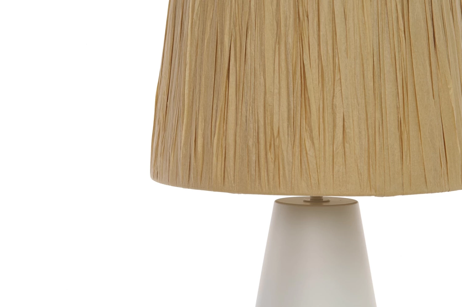 Shining the spotlight on space saving living, this perfect piece is made from metal and a contemporary raffia shade.