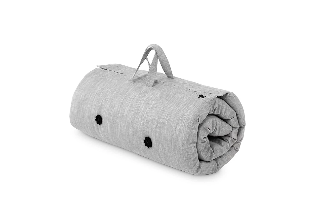 Roly Poly – Turn any corner into an impromptu cosy sleep space with our lightweight Roly-Poly futon roll. It transforms within seconds from a compact, zipped up roll with handy handles into a plush sleep space. Made from polydenim filling and thick cotton covering, each and every Roly Poly has the company mascot seal of approval embroidered on (Jake the Westie – the Futon Company dog).