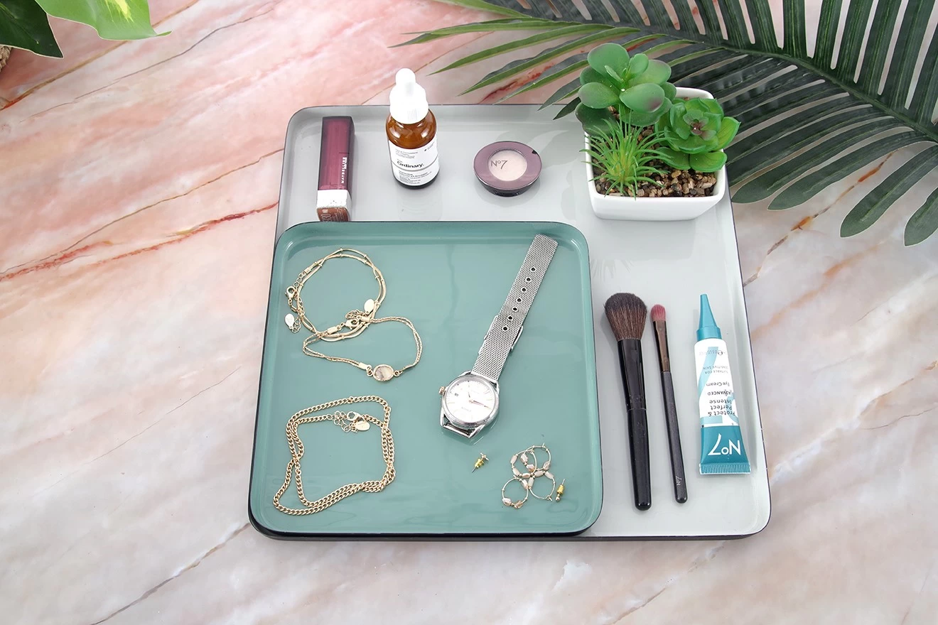 If you’re seeking an interior it-bit that culls the clutter and serves up in style, our Square Enamel Tray does just the job.