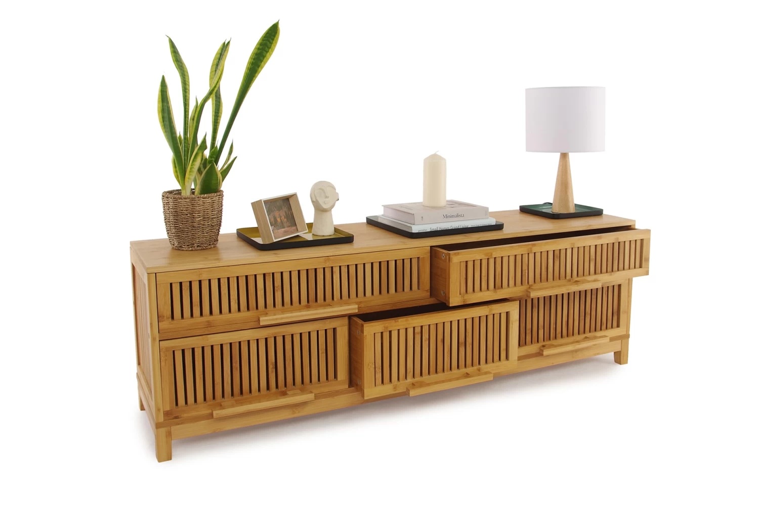 Ideally designed for small space living, our Bamboo Suratto Low Drawers has a sleek footprint and is sturdy yet lightweight.