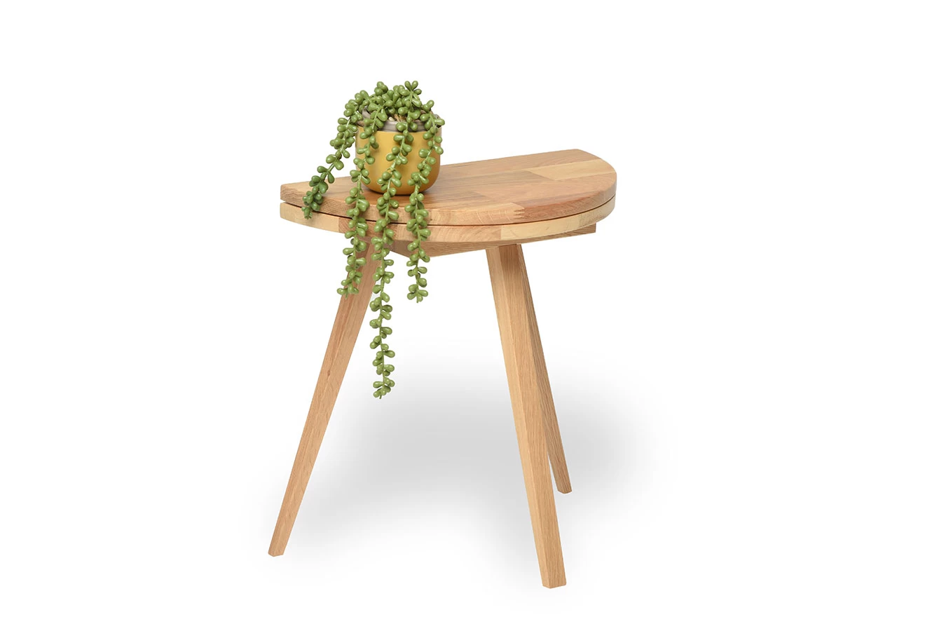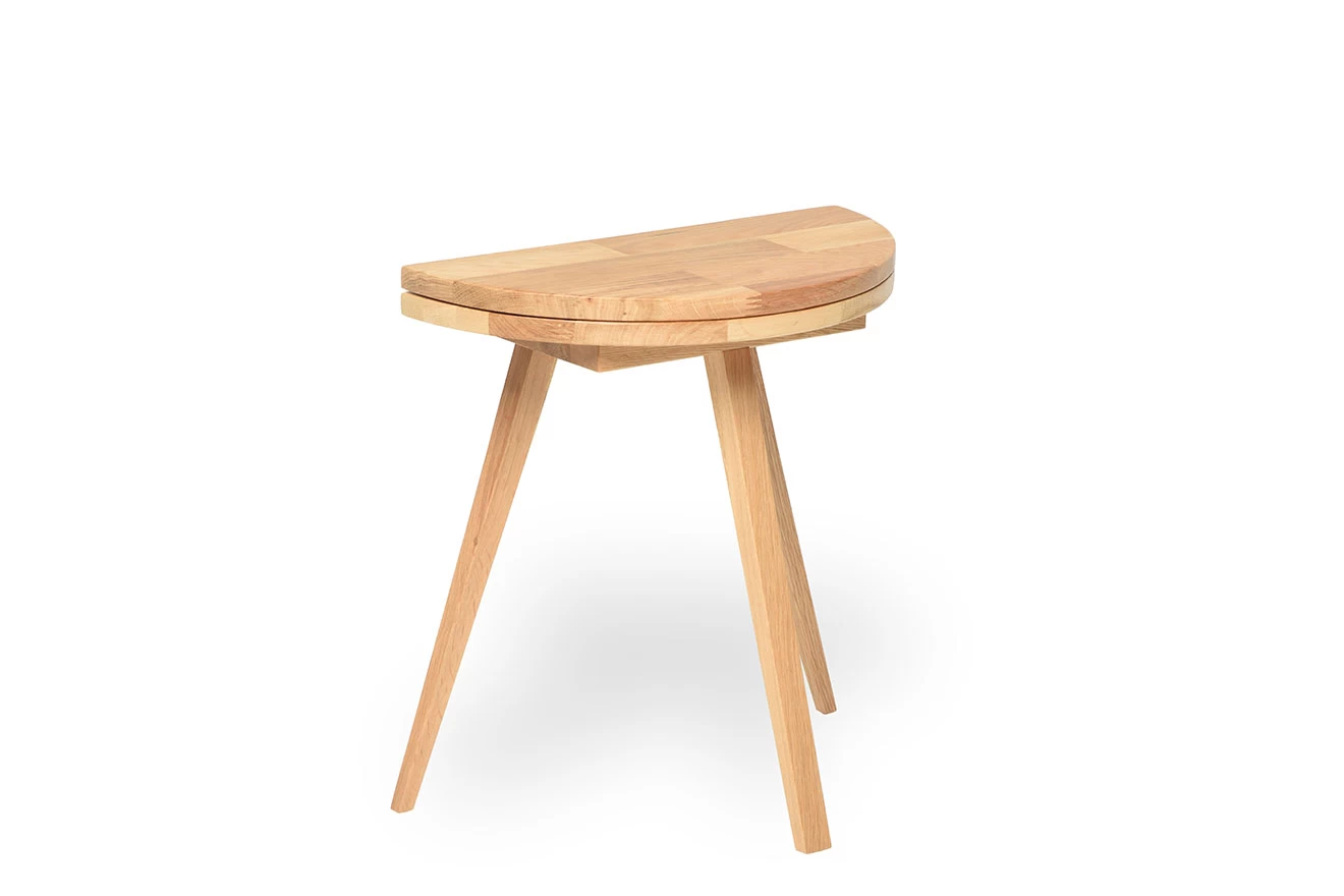 Made from natural oak, this active all-rounder easily transforms from a handy half-moon table into a neat circular table – at the flick of an easy-peasy swivel and flip movement, inspired by a Victorian Storage Desk. The space savvy design means the clever tripod leg formation offers stability, but allows the top to close to its half-moon shape.