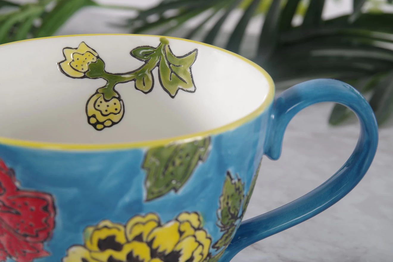 Our perfectly formed Tea Mug with a Dark Blue Flowers design is a fine example of modern-rustic tabletop firing on all cylinders.