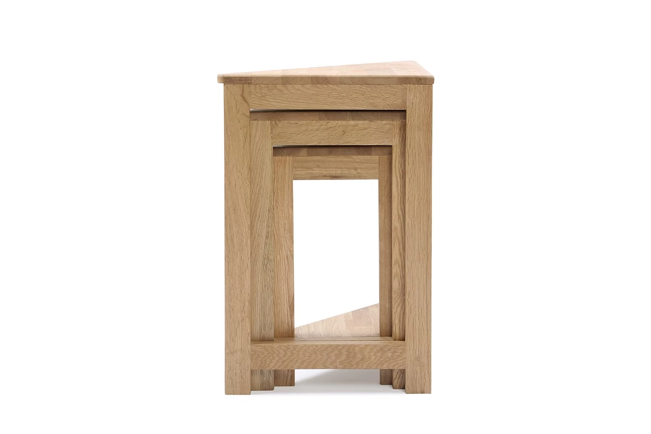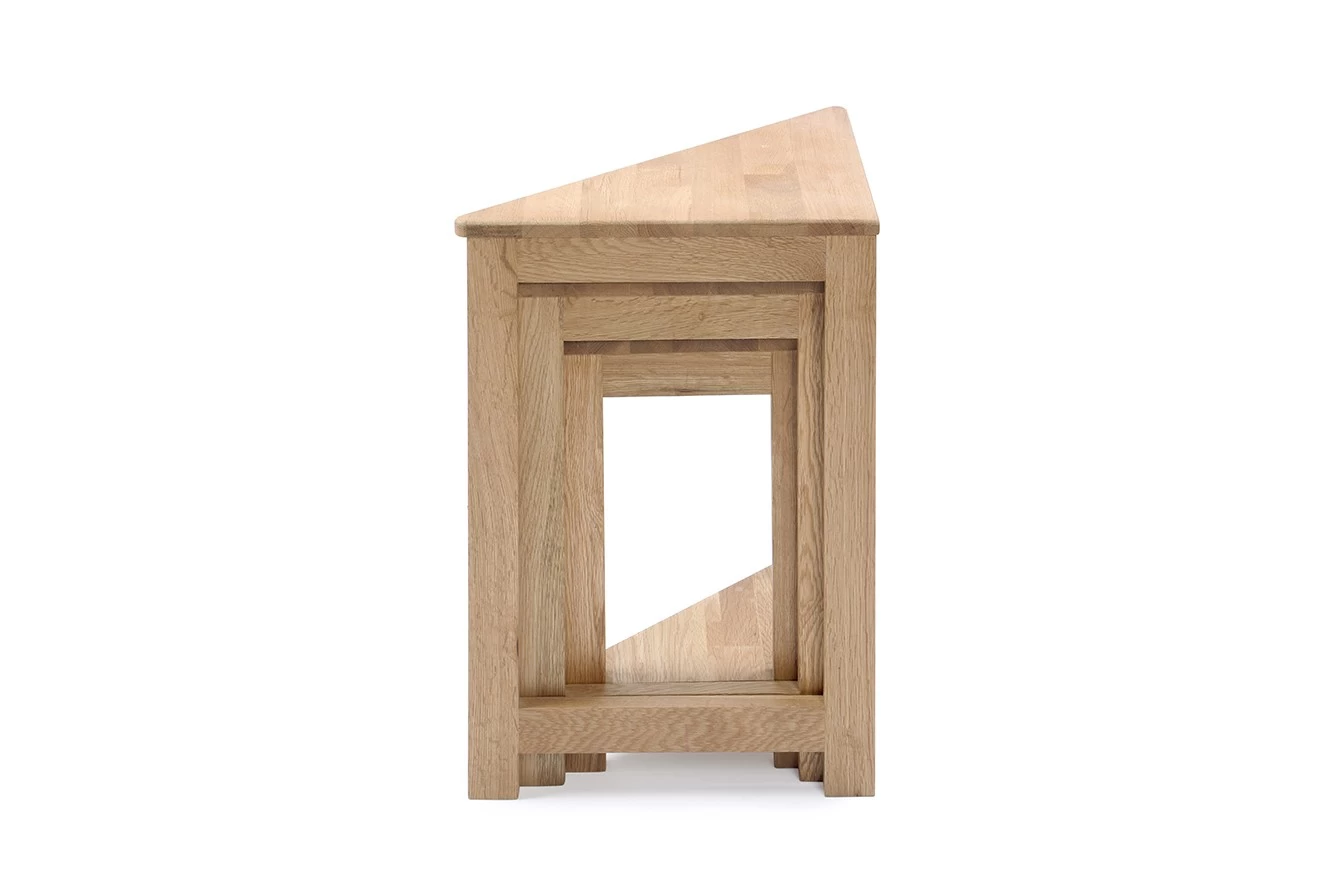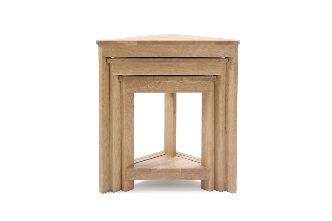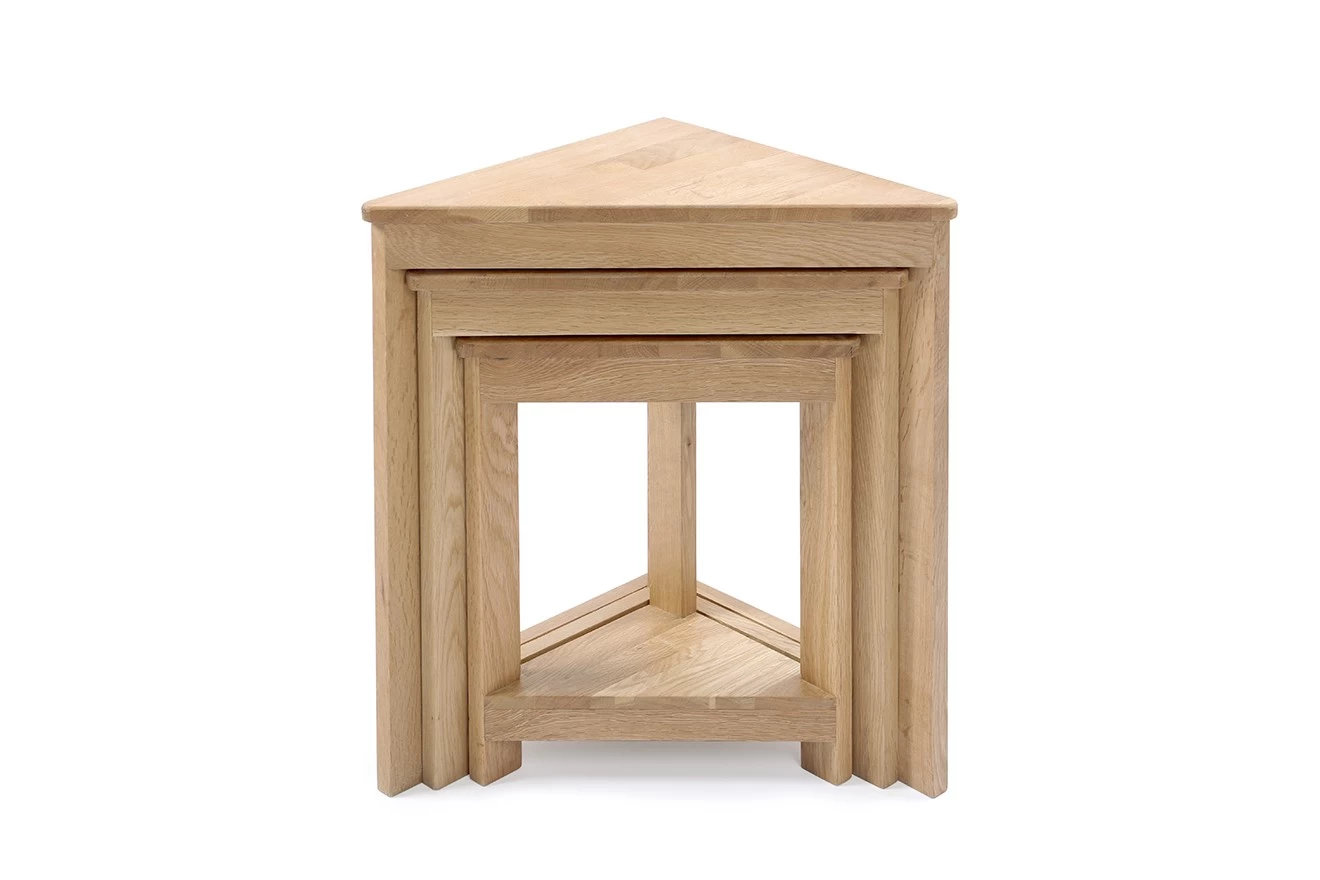 Our Tych Oak Nest of Tables delivers three times the tables, which can be used individually, then nest perfectly underneath one another when not needed.